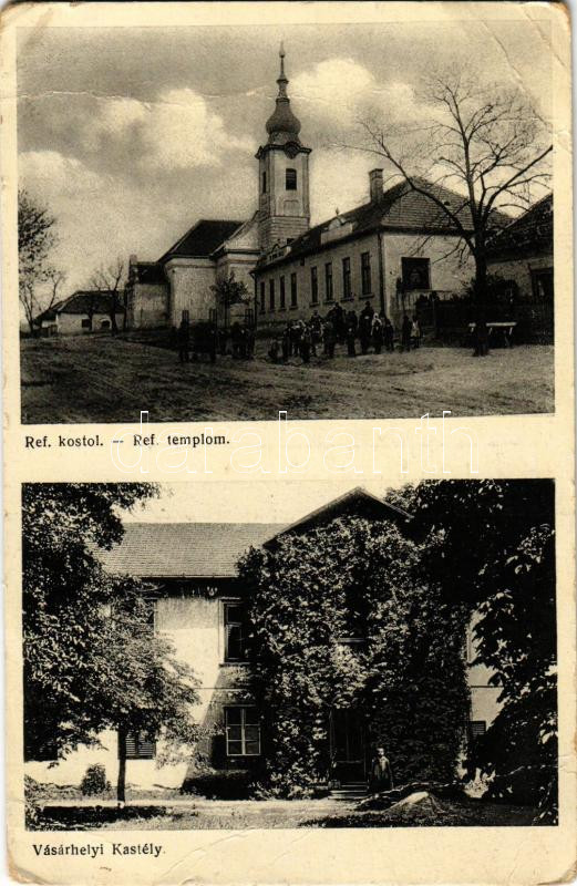 Komáromszentpéter, Szentpéter, Dolny Peter, Svaty Peter, Sväty Peter; református templom, Vásárhelyi kastély / Calvinist church, castle (gyűrődések / creases)