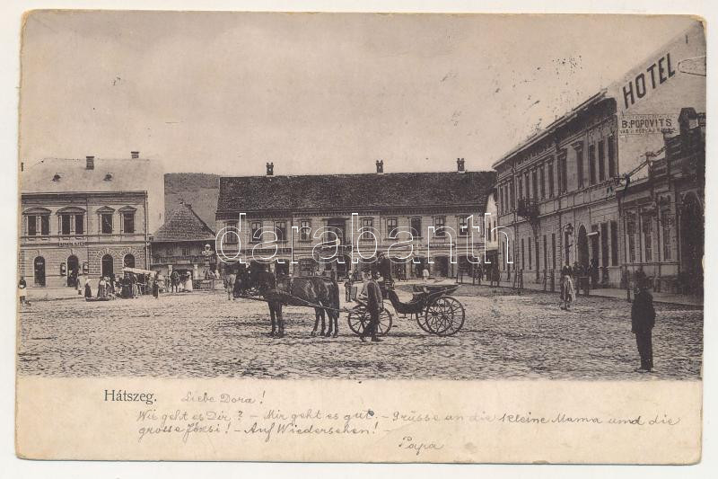 1904 Hátszeg, Hateg; Fő tér, B. Popovits, Szokol Ilyés, Kéméndy Albert... https://www.darabanth.com/en/512-Online-auction/512.0/Postcards/Transylvania~104/1904-Hatszeg-Hateg-Fo-ter-B-Popovits-Szokol-Ilyes-Kemendy-Albert-Reiszfeld-uzlete-pia~II3464278