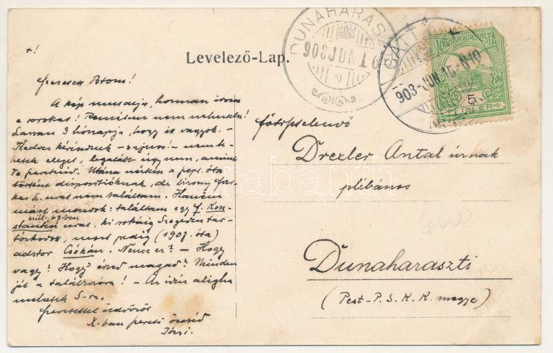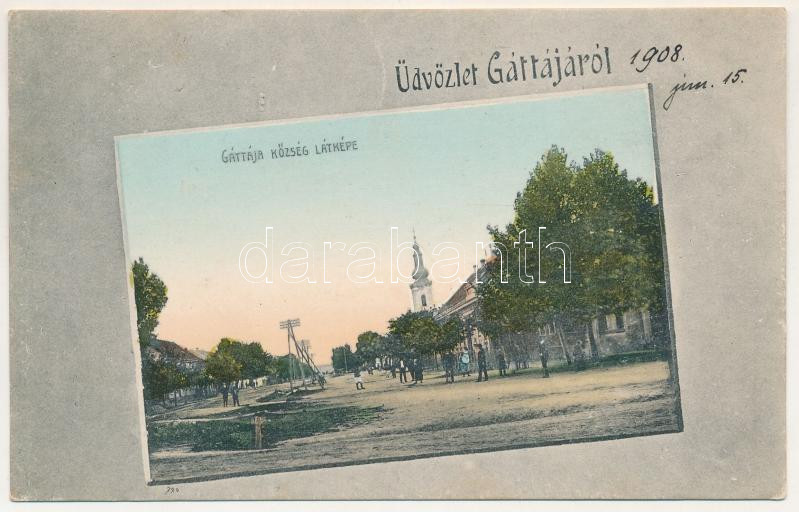 1908 Gátalja, Gáttája, Gataia; Község látképe, templom / street view, church. Art Nouveau (fl)