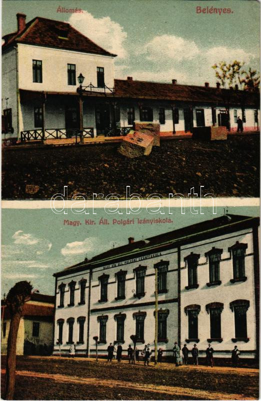 1914 Belényes, Beius; vasútállomás, M. kir. állami polgári leányiskola...