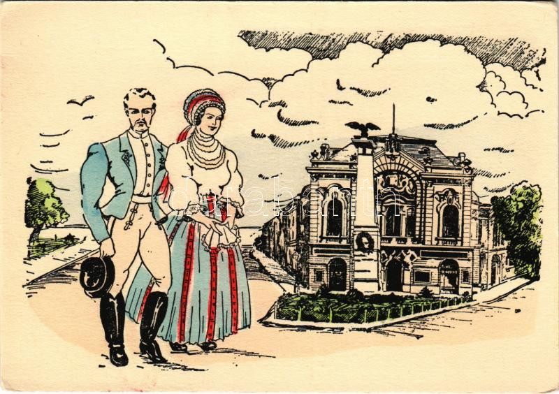 Description: Szabadka, Subotica; Kaponyai csataemlék. A vidék népviselete. Kiadja a Délvidéki Egyetemi és Főiskolai Hallgatók Egyesülete / Hungarian irredenta propaganda, military monument, folklore (EK)