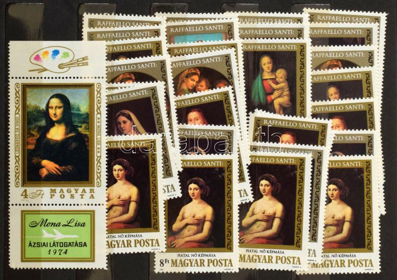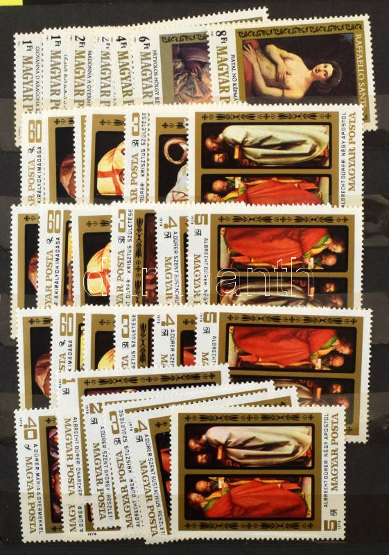 Festmény motívum kis tétel, benne sorok és bélyegkiállítási kisívek is...