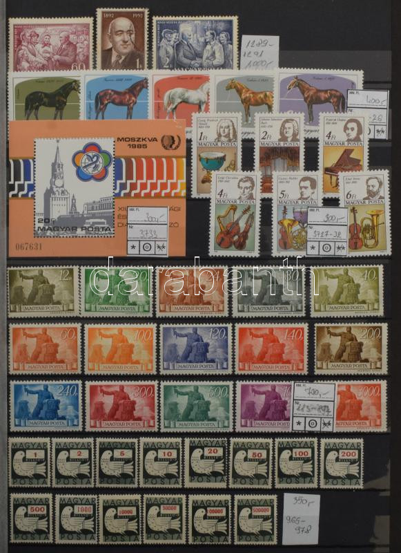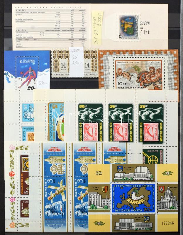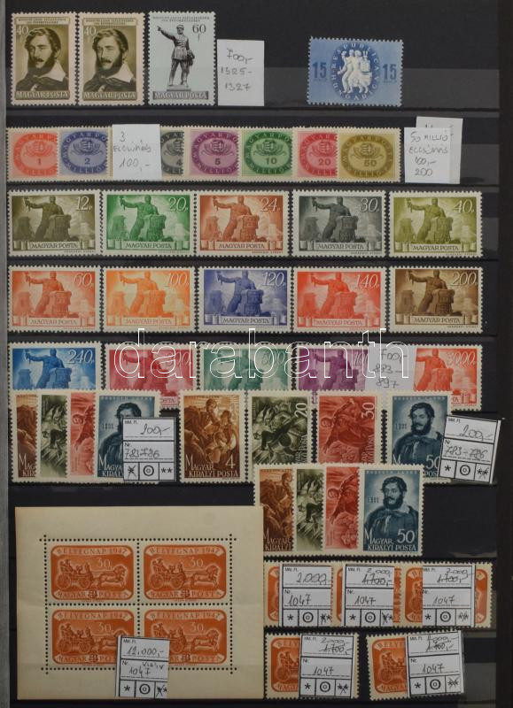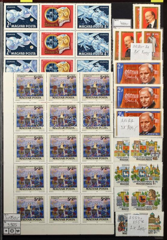 Magyar tétel sorokkal, blokkokkal, kisívekkel, másodpéldányokkal, 32 f...