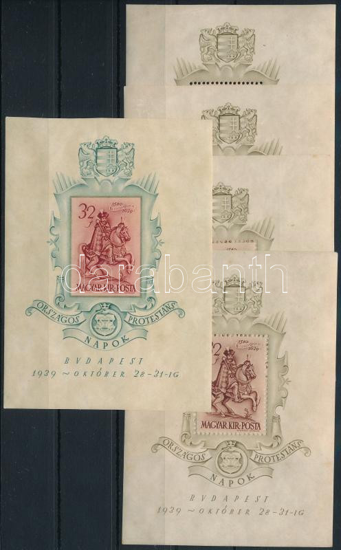1939 Bethlen 4 db fogazott + 1 db vágott blokk, kisebb-nagyobb hibákkal (25.000)