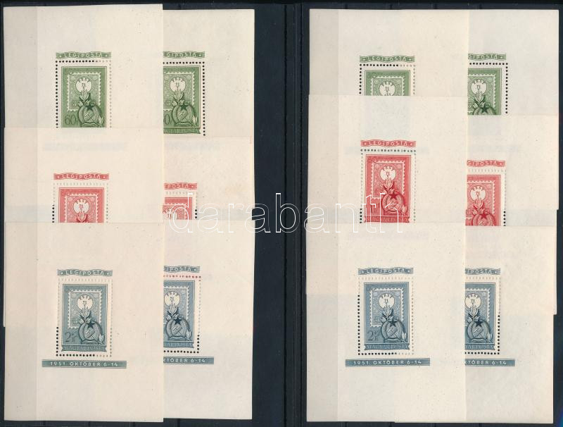 1951 80 éves a magyar bélyeg 6 db blokksor 3 stecklapon (306.000)