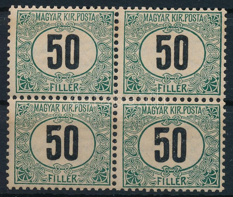1905 Zöldportó "A" 50f négyestömb 2. vízjelállás négyestömb ...