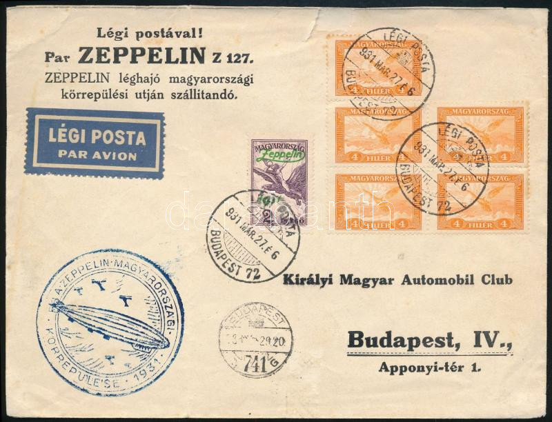 1931 Zeppelin magyarországi körrepülés levél 2P Zeppelin bélyeggel