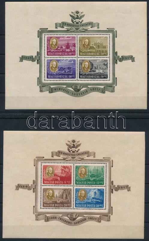 1947 Roosevelt blokkpár (60.000) (az első blokkon kis törések, apró rozsdapötty / small folds, tiny stain dot)