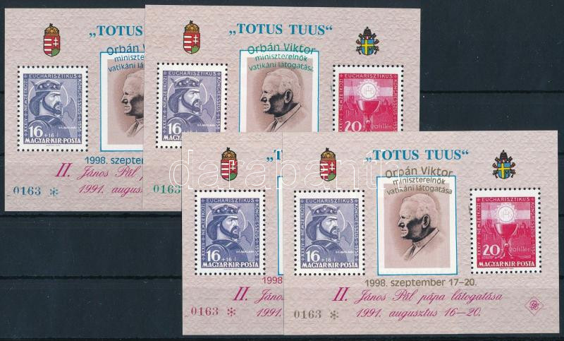 1998 Orbán Viktor vatikáni látogatása 4 darabos emlékív garnitúra azonos sorszámmal (22.000)