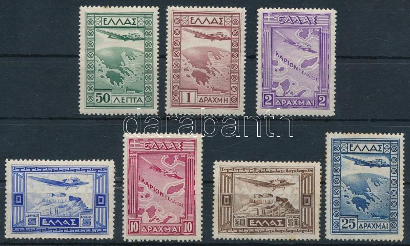 Görögország 1933 Légiposta sor Mi 362-368 (Mi EUR 300.-) (Mi 362 rozsda pötty, betapadás / stain spot, gum disturbance, Mi 366 gumi hiba / gum disturbance, Mi 367-368 rozsda folt / stain)