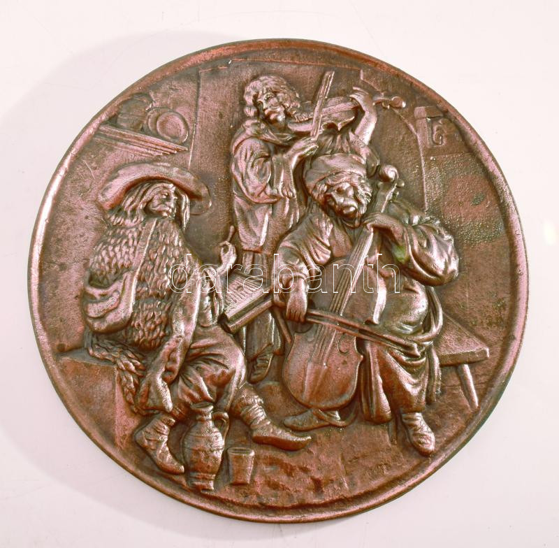 Mulatozók. Bronzírozott alumínium falitál, d: 28 cm