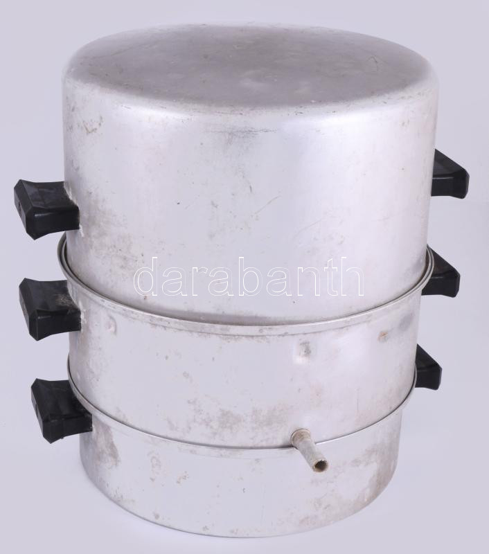 Retro orosz alumínium gyümölcslékészítő, pároló, konzerváló, leírással, m: 34 cm