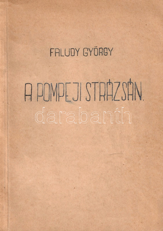 "A pompeji strázsán" címmel 1938-ban jelent meg Faludy György első önálló verseskötete, az Officina Kiadó gondozásában. Gépiratunk a verseskötet teljes szövegét közli, az eredeti kiadó feltüntetésével, ám oldalszámozás, illetve az eredeti versek címzettjeinek feltüntetése nélkül. Gépiratunk az 1950-es években keletkezhetett, Faludy György börtönbüntetése idején, illegális kiadványként.