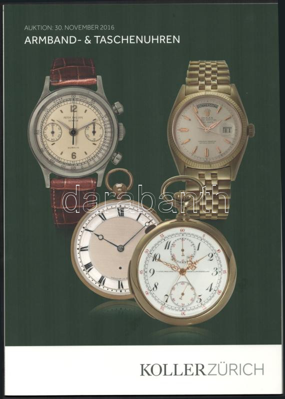 Koller Zürich. Armband- & Taschenuhren. (Aukciós katalógus, karóra és zsebóra témában.) Zürich, 2016, Koller Auktionen AG. Gazdag képanyaggal illusztrálva. Német nyelven. Kiadói papírkötés.