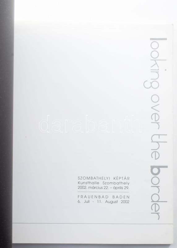 Looking over the border. Szombathelyi Képtár - Frauenbad Baden. Szomba... https://www.darabanth.com/en/513-Auction-philately-postcards-numismatics-artwork-books-collectibles-jewelry/513.0/Books/Books-Architecture-Art~161/Looking-over-the-border-Szombathelyi-Keptar-Frauenbad-Baden-Szombathely-Baden-2002-gazdag-sz~II3472110