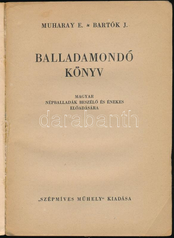 https://www.darabanth.com/en/513-Auction-philately-postcards-numismatics-artwork-books-collectibles-jewelry/513.0/Books/Books-Architecture-Art~161/Muharay-Elemer-Bartok-Janos-Balladamondo-konyv-Hn-en-Szepmives-Muhely-143-p-Kiad~II3466131