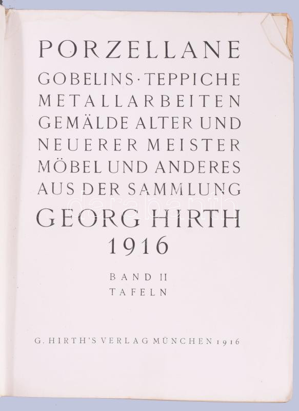 Porzellane, Gobelins, Teppiche, Gemälde alter Meister, Farbstiche u. anderes aus der Sammlung Georg Hirth. Katalog Band II (Tafeln). München, 1916, G. Hirth's Verlag, 168 t. Kiadói papírkötésben fűzésnél szétvált.
