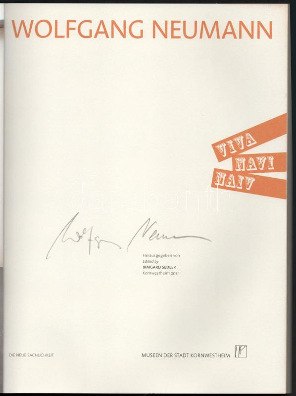 Description: Wolfgang Neumann: Viva Navi Naiv. (Kiállítási katalógus.) Szerk.: Irmgard Sedler. Kornwestheim, 2011, Museen der Stadt Kornwestheim. Gazdag képanyaggal illusztrálva. Német és angol nyelven. Kiadói papírkötés.