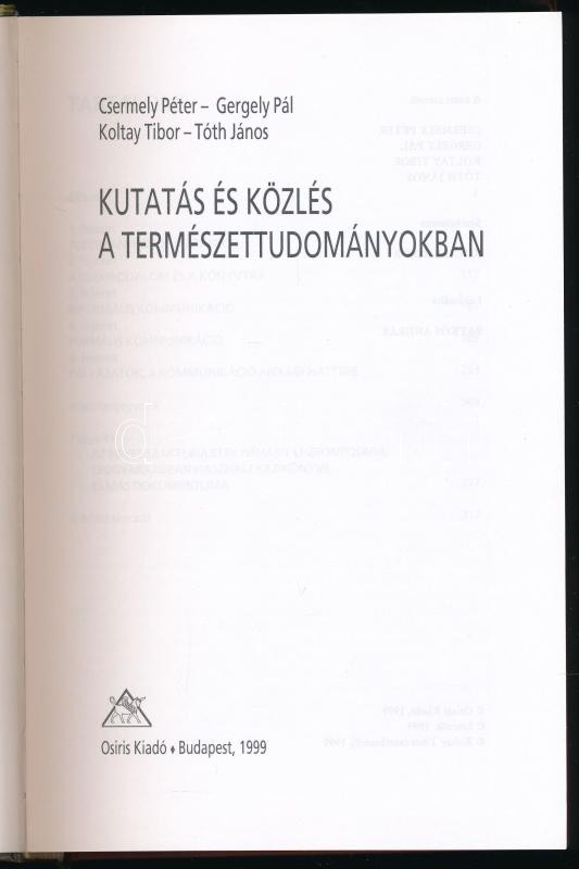 Csermely Péter - Gergely Pál - Koltay Tibor - Tóth János: Kutatás és közlés a természettudományokban. Bp., 1999, Osiris. Kiadói kartonált papírkötés.