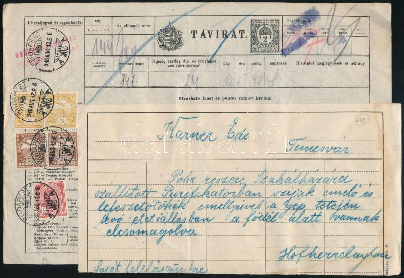 https://www.darabanth.com/en/513-Auction-philately-postcards-numismatics-artwork-books-collectibles-jewelry/513.0/Hungarian-philately-and-postal-history/Issues-between-1900-1919~31/1916-Uzleti-tavirat-1K-44f-Turul-bermentesitessel-BUDAPEST-Temesvar~II3470242