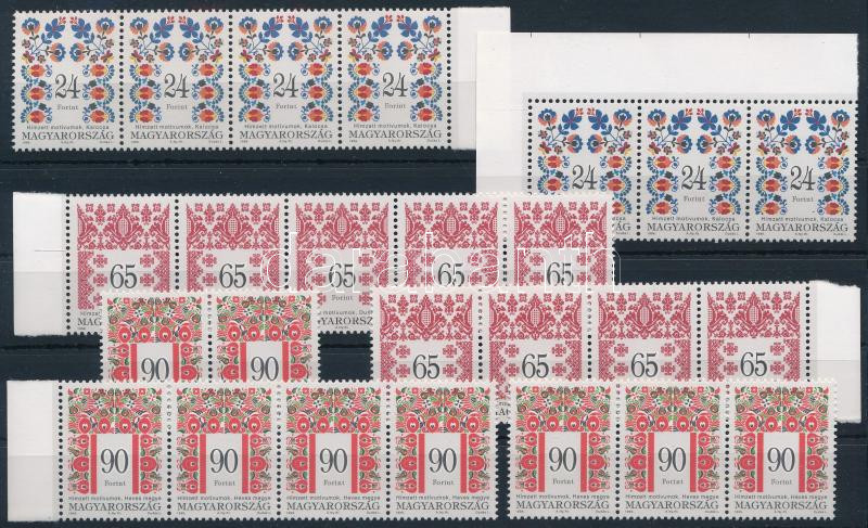 1999 Magyar népművészet 24Ft ívsarki hármascsík és ívszéli négyescsík + 65Ft ívszéli ötöscsík és négyescsík + 90Ft pár, hármascsík és ívszéli négyescsík