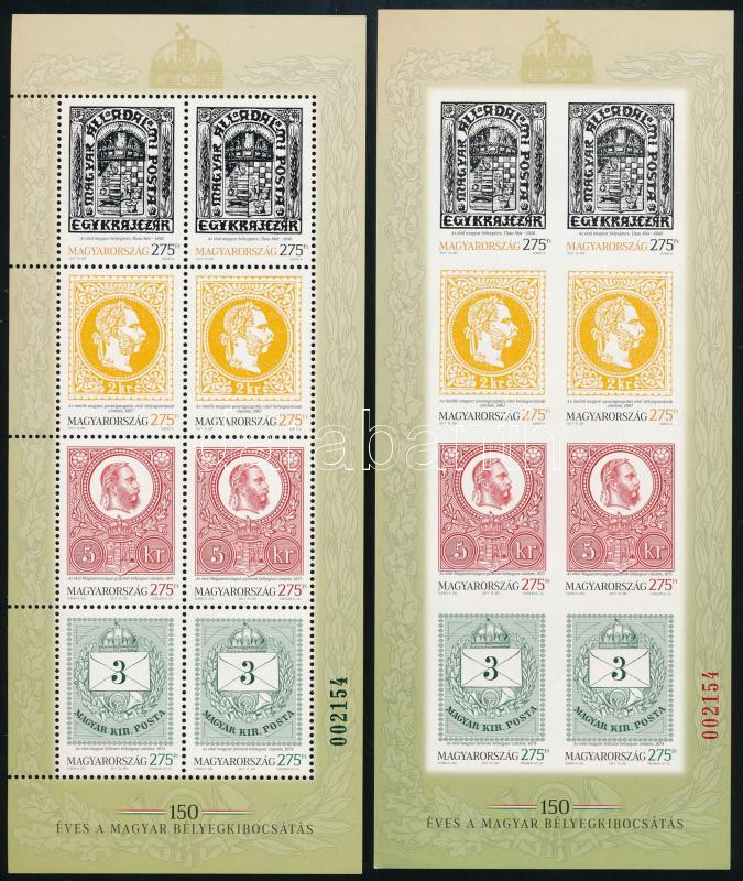 2017 150 éves a magyar bélyegkibocsátás fogazott-vágott blokkpár azonos sorszámmal (14.000)