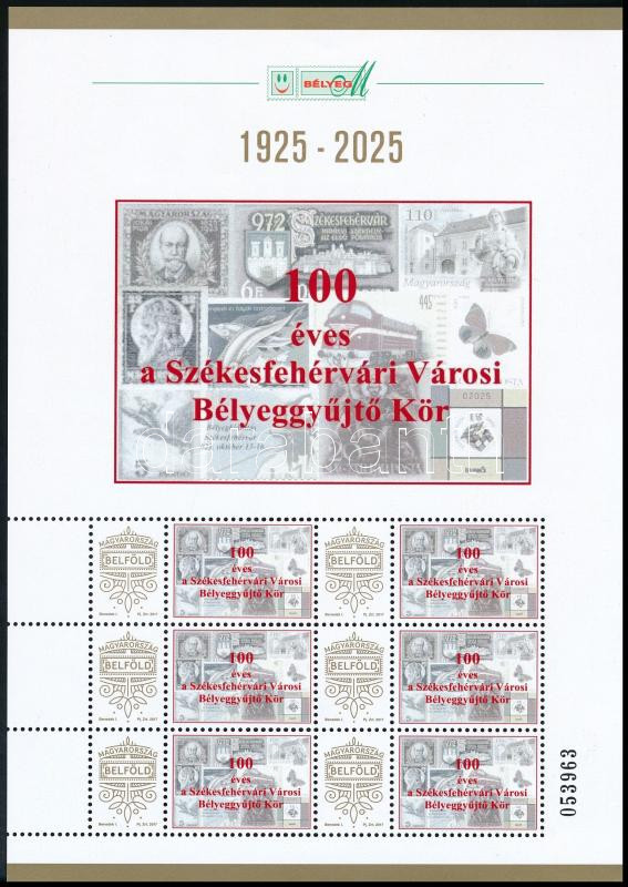 2025 100 éves a Székesfehérvári Városi Bélyeggyűjtő Kör tematikus megszemélyesített hatos kisív
