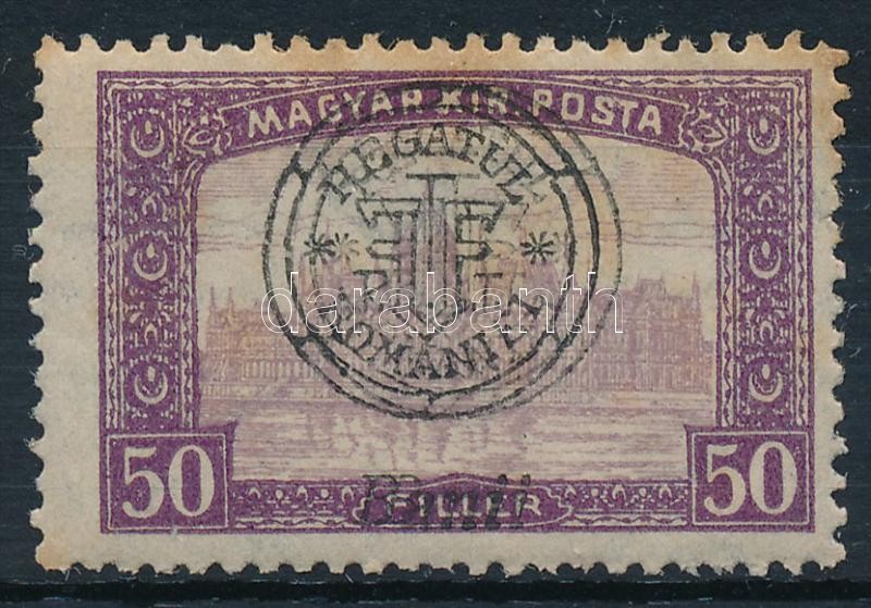 Nagyvárad 1919 Parlament 50f kettős felülnyomással / Mi 37 II double o...