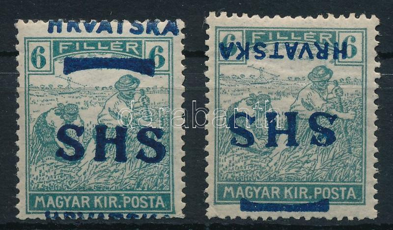 SHS 1918 Arató 6f eltolódott és fordított felülnyomással, Bodor vizsgálójellel