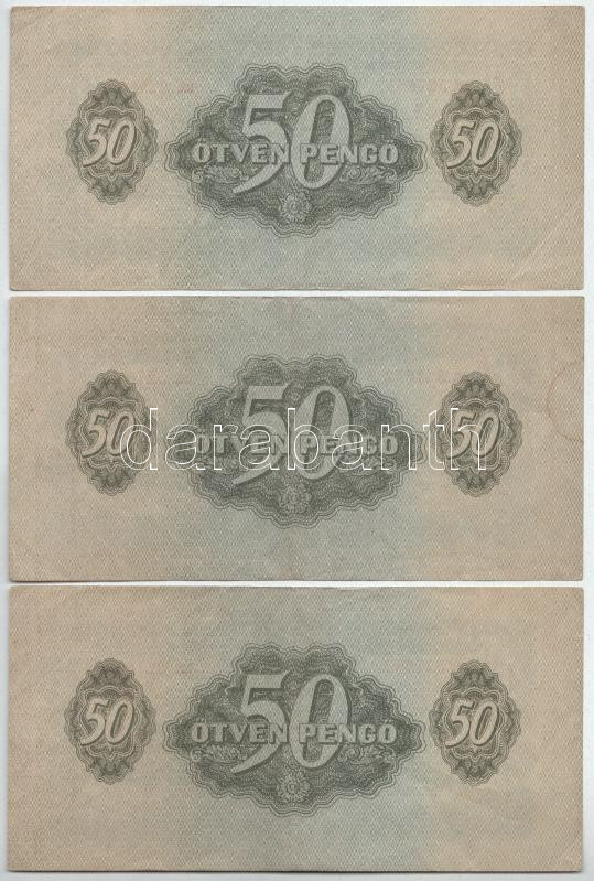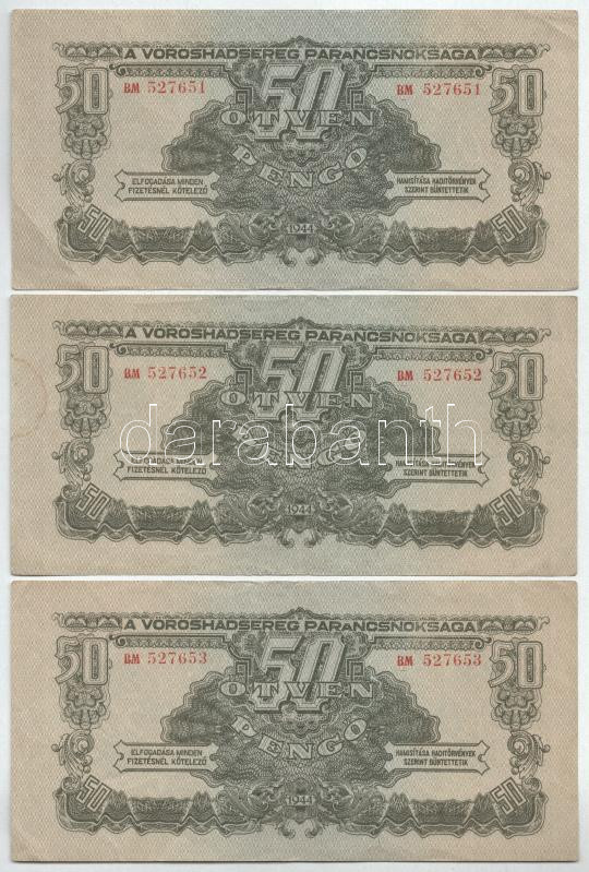 1944. 50P "A Vöröshadsereg Parancsnoksága" (3x) sorszámkövetők "BM 527651 - BM 527653" T:F szép papír