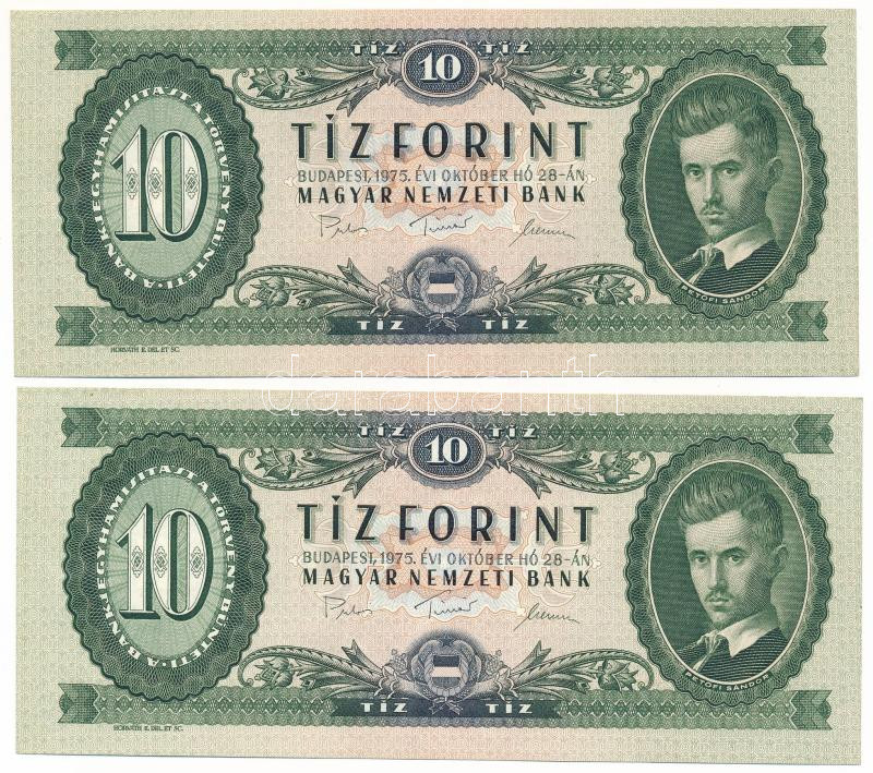 1975. 10Ft (2x) egyugrásos sorszámkövető "A 122 126773, A 122 126775" T:AU Adamo F8