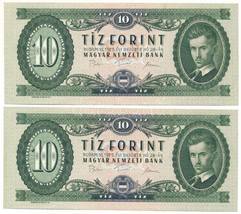1975. 10Ft (2x) sorszámkövetők "A 122 126789 - A 122 126790" T:AU Adamo F8