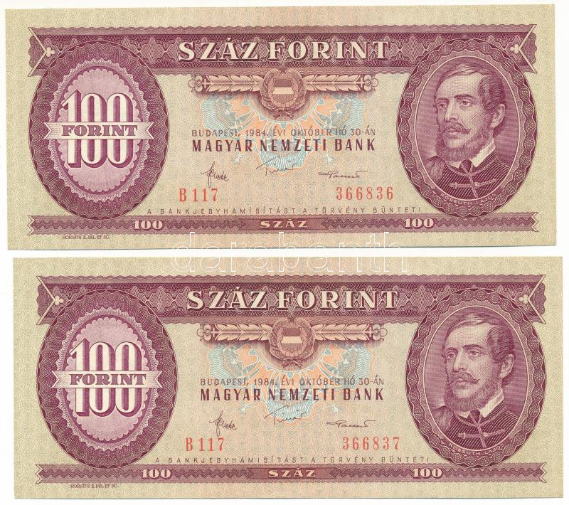 1984. 100Ft (2x) sorszámkövetők "B 117 366836 - B 117 366837" T:AU