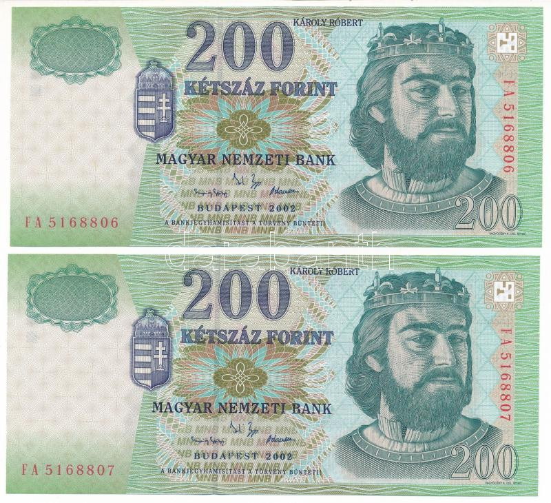 2002. 200Ft (2x) sorszámkövetők "FA 5168806 - FA 5168807" T:...