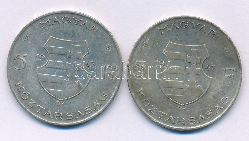 https://www.darabanth.com/en/513-Auction-philately-postcards-numismatics-artwork-books-collectibles-jewelry/513.0/Numismatics/Hungarian-coins-and-coins-with-Hungarian-mint-marks~717/1947-5Ft-Ag-3Cem3EKossuth3Cem3E-2x-TVF-F-patina3Cbr-3E-Adamo-F81~II3469302
