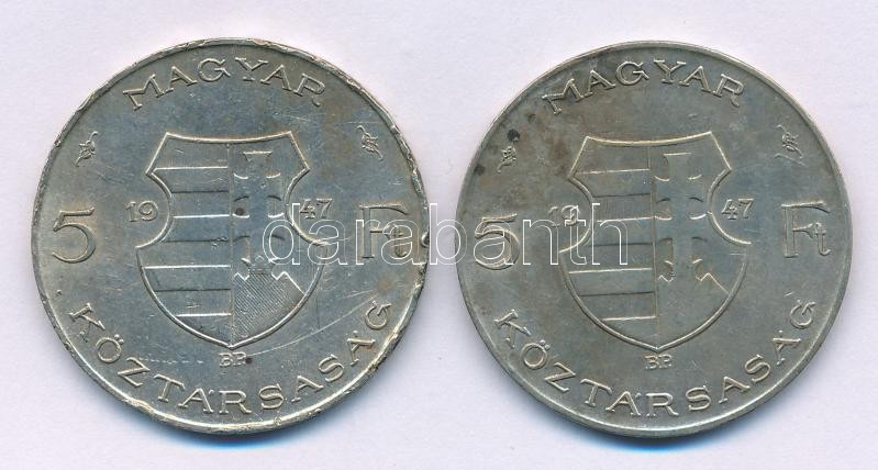 https://www.darabanth.com/en/513-Auction-philately-postcards-numismatics-artwork-books-collectibles-jewelry/513.0/Numismatics/Hungarian-coins-and-coins-with-Hungarian-mint-marks~717/1947-5Ft-Ag-3Cem3EKossuth3Cem3E-2x-TVF-F-patina3Cbr-3E-Adamo-F81~II3469303