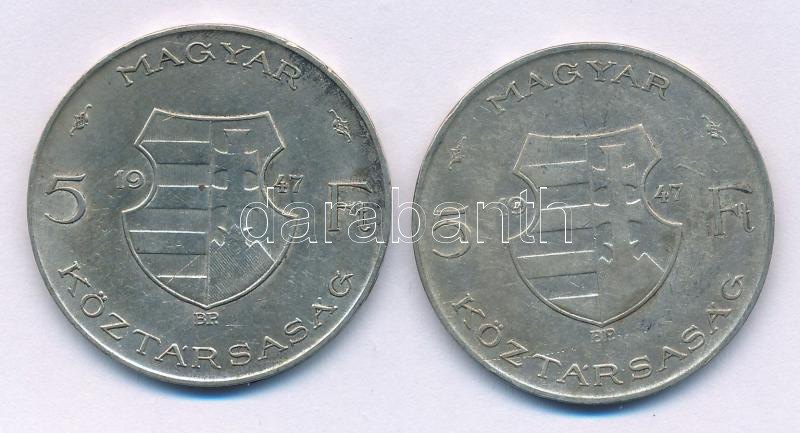 1947. 5Ft Ag "Kossuth" (2x) T:XF,F patina