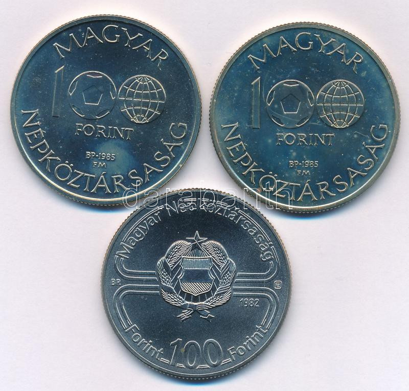 1982. 100Ft Cu-Ni "Labdarúgó világbajnokság 1982" + 1985. 100Ft alpakka "Labdarúgó Világbajnokság 1986 - Mexikó" + 1985. 100Ft alpakka "Labdarúgó Világbajnokság 1986 - Mexikó térkép" mindhárom kapszulában T:UNC