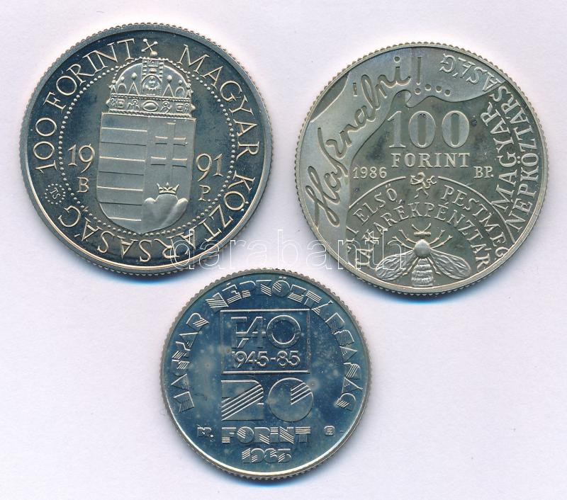 1985. 20Ft Cu-Ni "FAO" + 1986. 100Ft Cu-Ni "Fáy András" + 1991. 100Ft Cu-Ni "II. János Pál pápa látogatása" mindhárom kapszulában T:BU,AU (eredetileg PP)