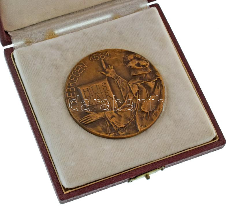 Ligeti Erika (1934-2004) DN "Debrecen 1561 - Huszár Gál / ANY (Alföldi Nyomda) - Hűséges Munkáért" kétoldalas bronz emlékérem, eredeti de sérült tokban (60mm) T:AU