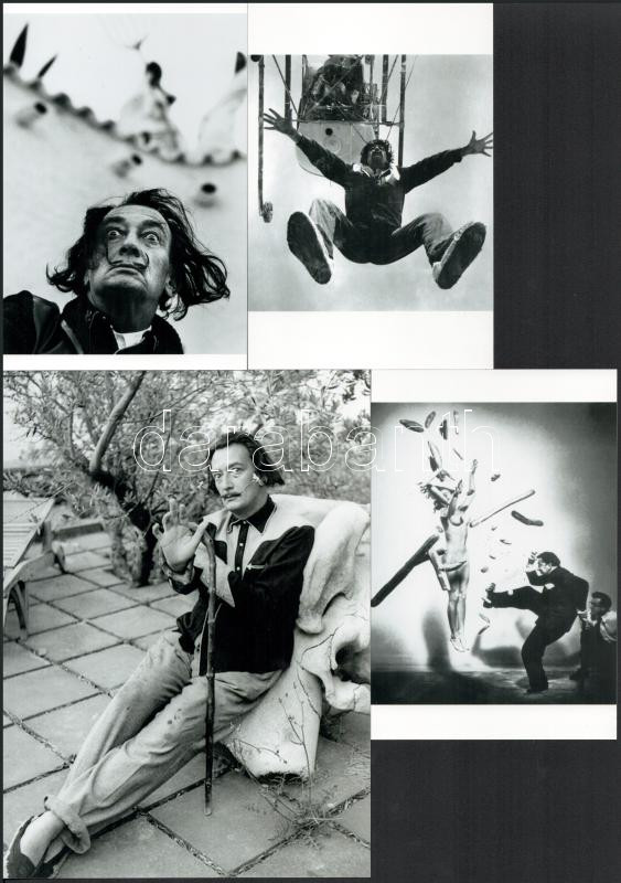 Dali, Salvador (1904-1989) katalán - spanyol szürrealista festőművész, aki fényképezés közben gyakran önmagát rendezte, vagyis kitalálta előre a képet, s ehhez hívott fotós segítséget, eltérő időben készült felvételek, 4 db modern nagyítás, jelzés nélkül, 21x15 cm és 15x10 cm