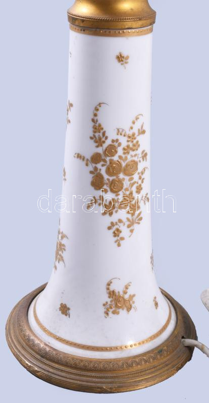 cca 1930 Sevres stílusú porcelán lámpatest, réz szerelékkel, m: 28 cm