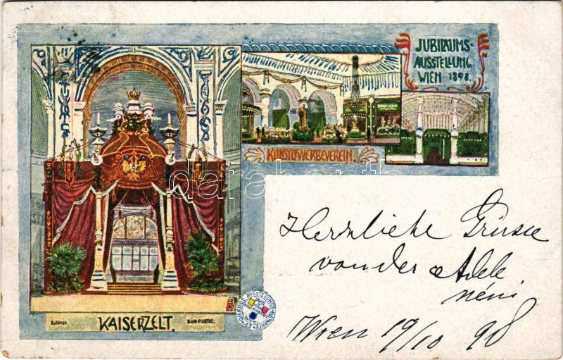 1898 Wien, Vienna, Bécs; Jubiläums-Ausstellung 1898. Kunstgewerbeverein, Kaiserzelt. Ausstellungs-Postkarten / exhibition (EM)