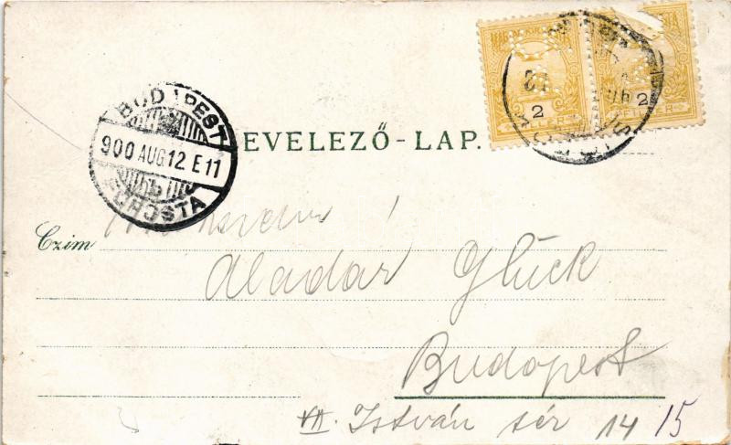 1900 Siófok, Hullám és Sió szálloda, étterem, Maria lak, Erzsébetlak, Központi szálloda, fürdőző hölgyek. Salamon Adolf, Art Nouveau, floral, litho (EK)