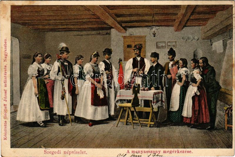 https://www.darabanth.com/en/513-Auction-philately-postcards-numismatics-artwork-books-collectibles-jewelry/513.0/Postcards/Hungary~511/1904-Szeged-Szegedi-nepviselet-A-menyasszony-megerkezese-Keszitette-Drotleff-Jozsef-muintC3~II3472272