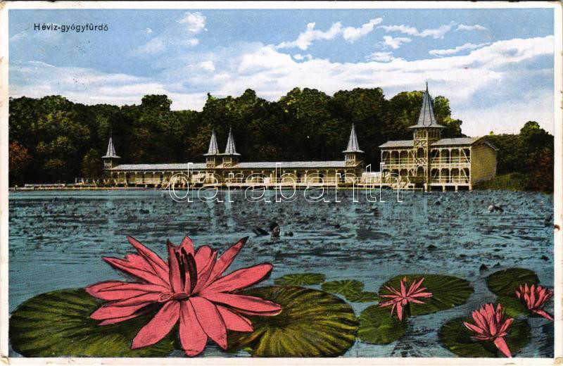1930 Hévíz, gyógyfürdő, montázs lótusszal (EB)