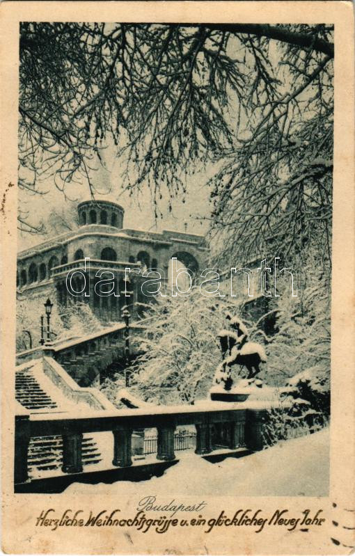 1939 Budapest I. Halászbástya télen, karácsonyi üdvözlet. Szénásy Béla...
