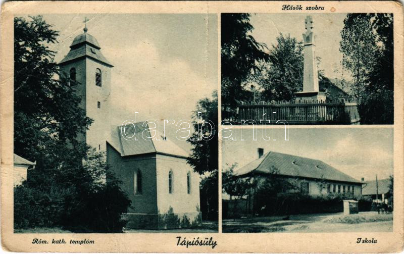 Tápiósüly, Tápiósüly-Tápiósáp (Sülysáp); Római katolikus templom, Hősök szobra, iskola. Hangya kiadása (gyűrődések / creases)