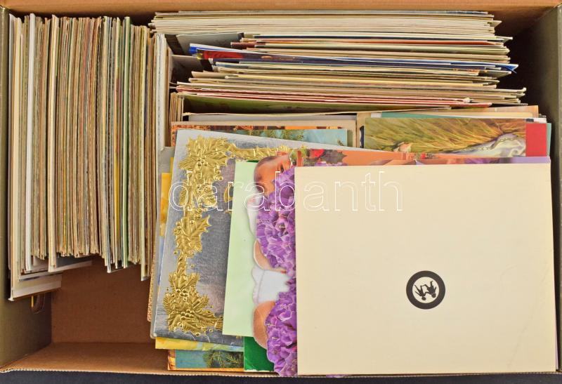 Kb. 1000 db vegyes MODERN üdvözlőlap sok egyedivel, kihajthatóval stb. cipősdobozban / Cca. 1000 modern greeting postcards in a shoe box