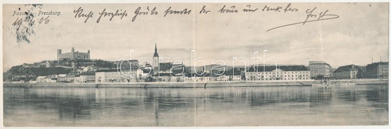 1906 Pozsony, Pressburg, Bratislava; Bediene dich allein 2-részes kinyitható panorámalap / 2-tiled folding panoramacard (fa)